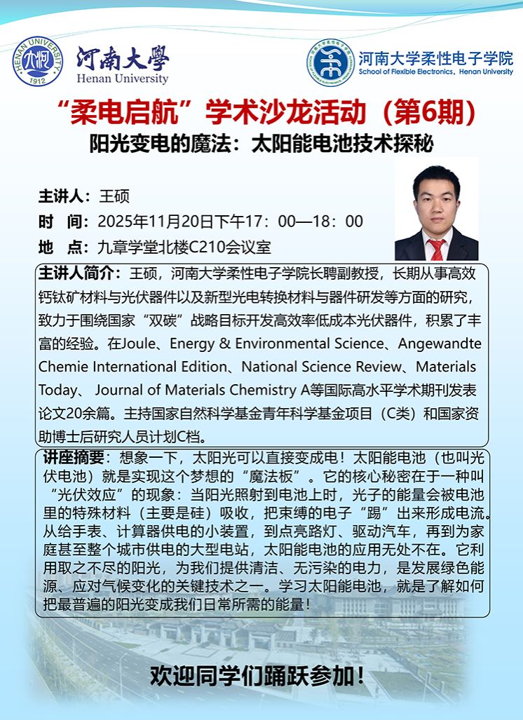 [“柔电启航”学术沙龙] 第6期 阳光变电的魔法:太阳能电池技术探秘